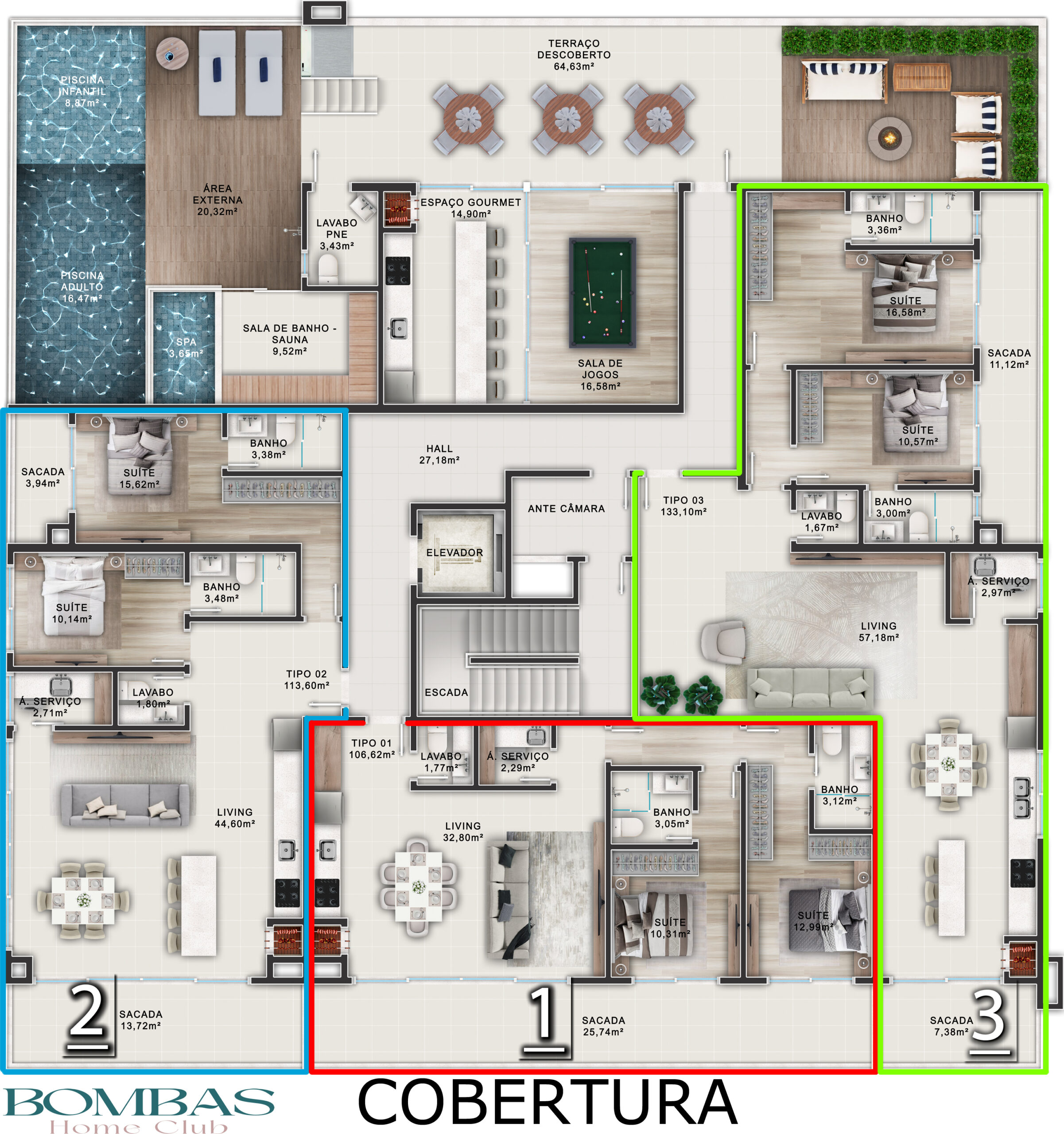 No Bombas Home Club cada detalhe e todo espaço foi desenvolvido para ofereder um estilo de vida moderno e luxuoso a todo moradores.